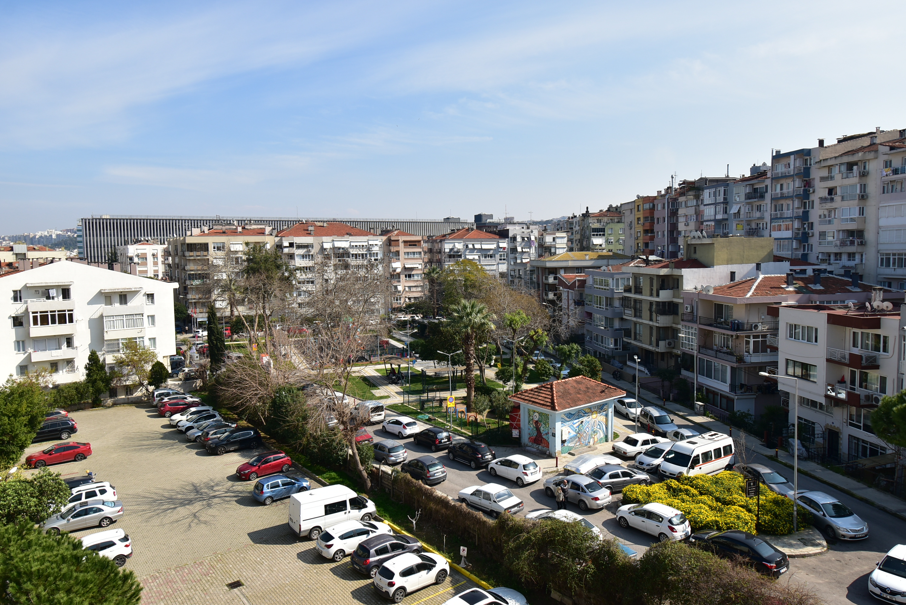 Şehir ve park manzaralı.