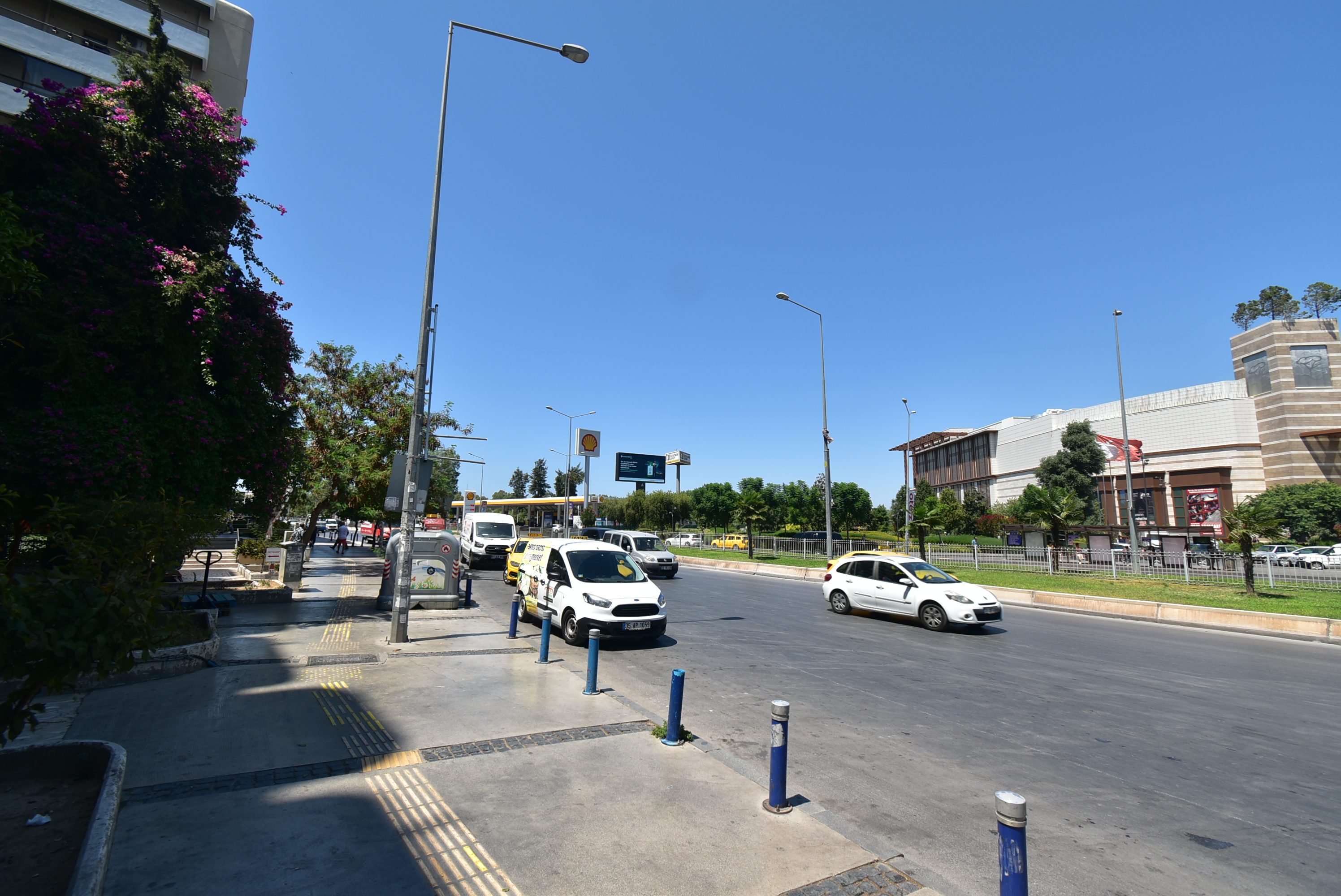 Metro, tramvay ve otobüs durakları önünde.