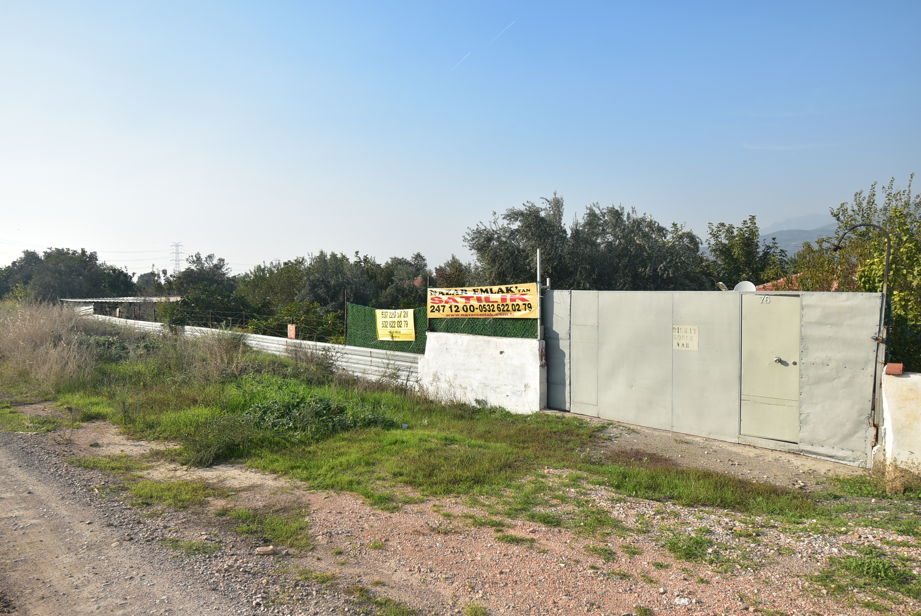 - Arazinin tamamı çit ve duvar çevrili